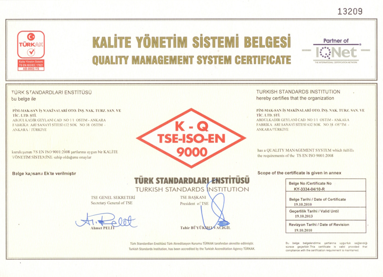 گواهی مدیریت کیفیت TSE ISO 9001:2008 |